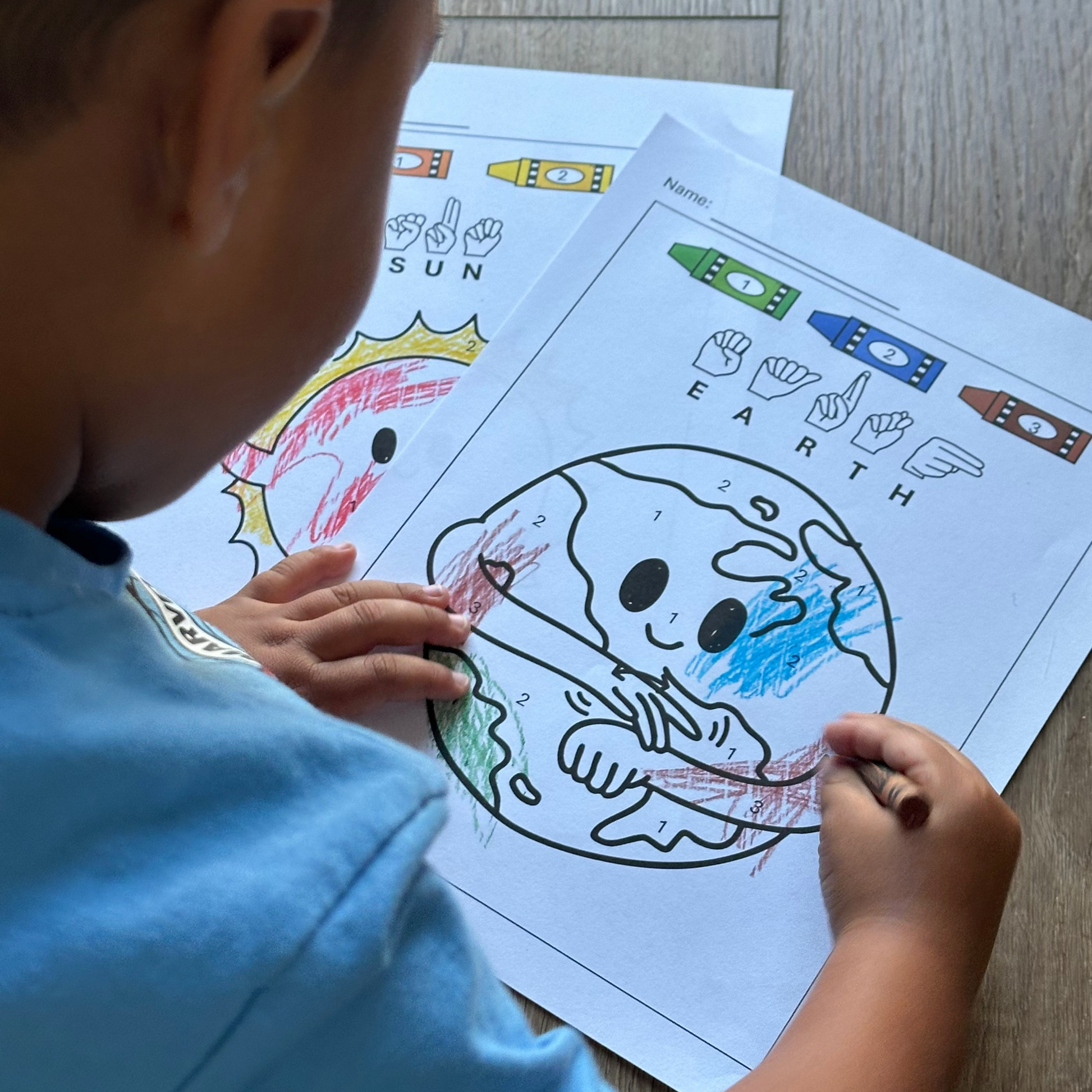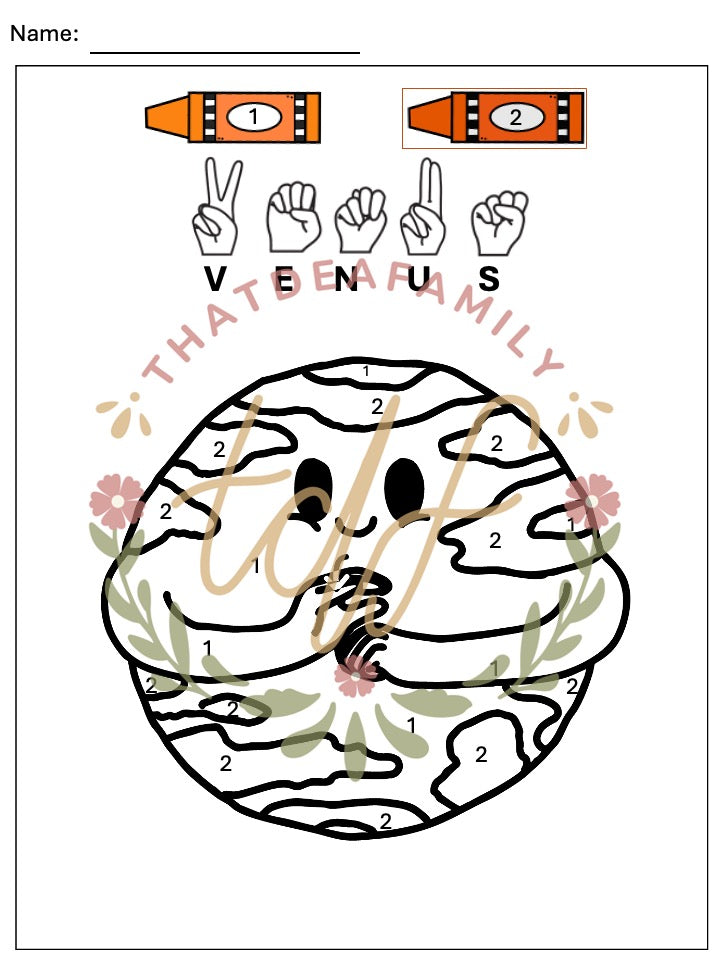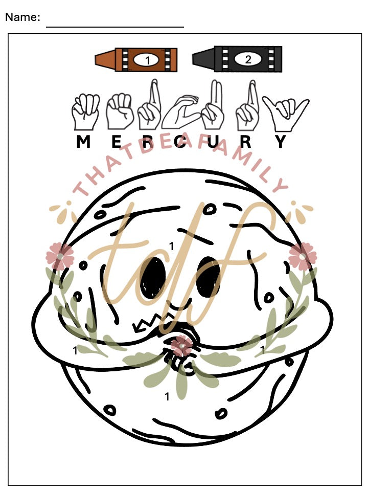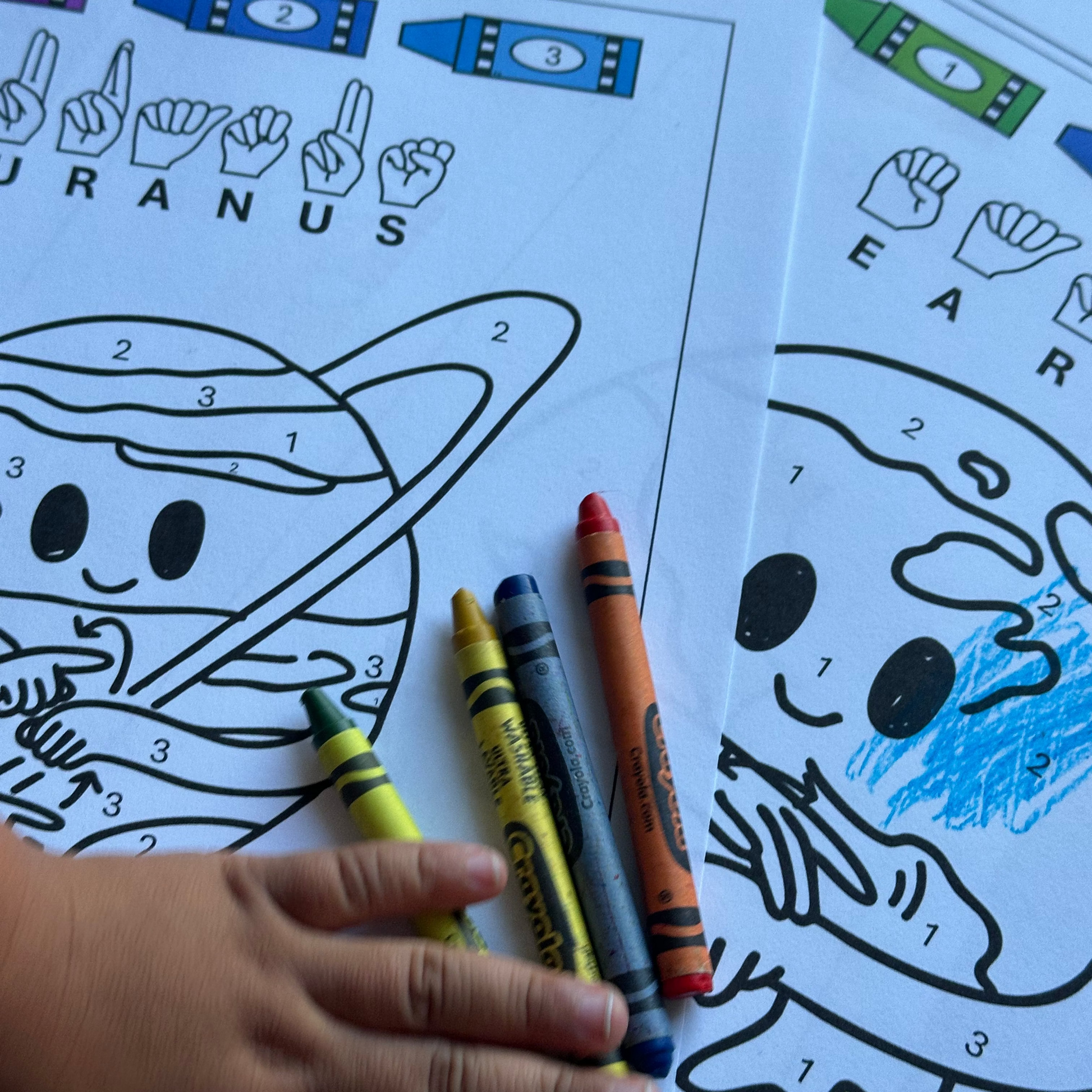 This ASL Planets Color by Number worksheet includes: Galaxy, Comet, Sun, Moon, Mercury, Venus, Earth, Mars, Jupiter, Saturn, Uranus, Neptune, and Pluto.